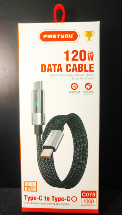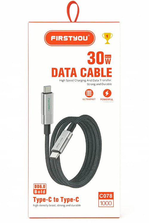 کابل FIRSTYOU مدل C078 یک کابل قدرتمند با توان حداکثر 30 وات است که علاوه بر شارژ سریع و انتقال داده پرسرعت، مجهز به نمایشگر LED کوچک روی کانکتور است. این LED میزان جریان ورودی را بهصورت لحظهای نشان میدهد تا از سرعت شارژ و سلامت شارژر خود مطمئن شوید.