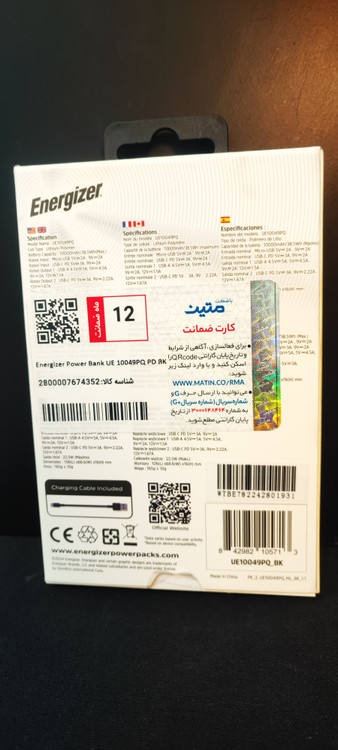 پاوربانک انرجایزر 10000 میلیآمپر با شارژ سریع PD و QC